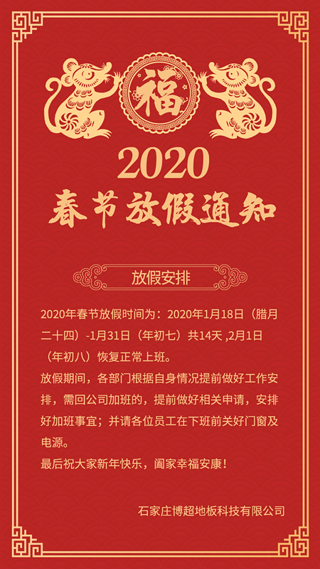 附:博超悬浮地板厂家二O二O年春节放假通知