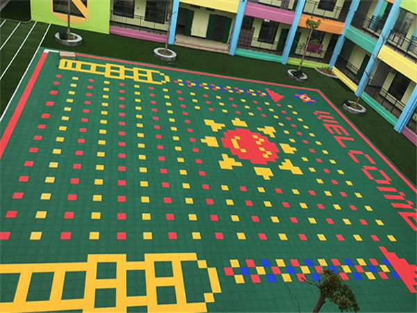 幼儿园悬浮地板在安装的过程当中不需要使用胶水粘结,直接拼装即可,且只需用清水冲洗即可,污水会随着地板底部的排水口排出,不会形成淤积,清洗同时不会影响使用,打理起来十分方便。