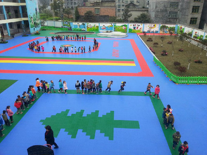 悬浮式拼装地板已成为当下幼儿园时尚与中高端园区的象征!幼儿园悬浮式拼装地板的广泛应用主要体现在:健康环保、色彩艳丽、安全保护、体感舒适、耐污防滑、保养经济等方面,该产品所用原料聚丙烯(PP)为高强度材料,采用具有抗紫外线辐射、抗氧化、耐寒等原材料的改性聚丙烯,使该产品具有耐压、耐冲击、耐高低温、使用寿命长等优点。博超悬浮式拼装地板可广泛用于各类运动场地,幼儿园,娱乐,休闲,健身场地。