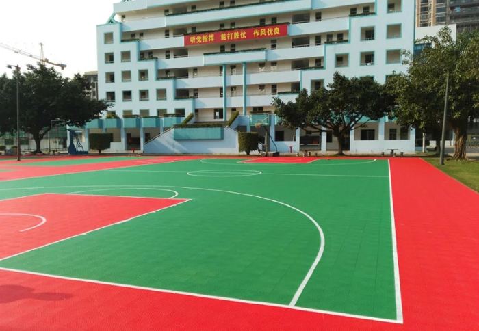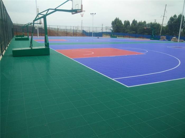 现在越来越多的篮球场都在使用悬浮拼装运动地板,悬浮拼装运动地板使用环保材料生产而成,环保健康。悬浮拼装运动地板颜色多样,可以设计出不同颜色的球场,给予球员不一样的运动感受。悬浮拼装运动地板场地效果好,不浮夸耀眼,不吸光不反光不刺眼,能带给运动员更舒适的视觉感。同时,对于篮球这类运动场地,其不同的颜色搭配能形成更鲜明和谐的对比,悬浮拼装运动地板适合用于室外篮球场。